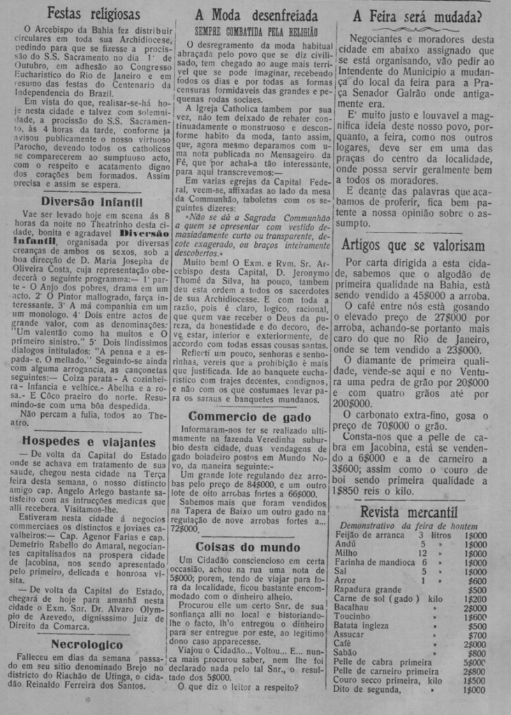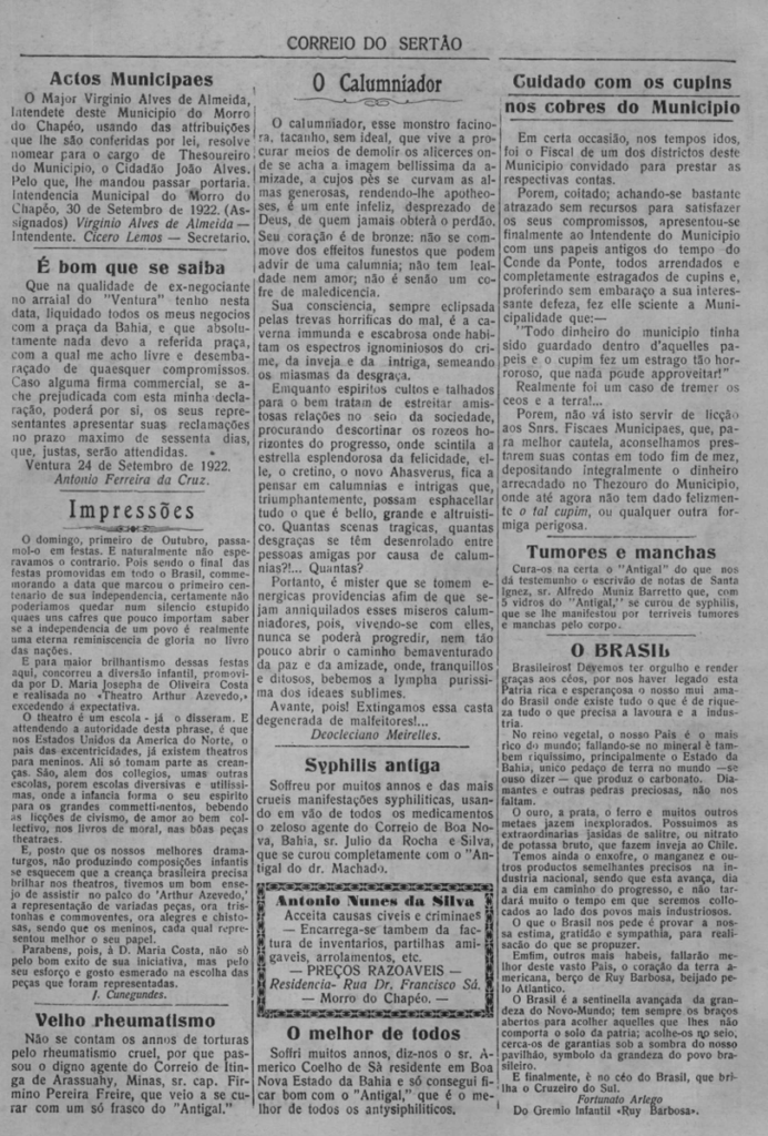 Veremos hoje: Será multado quem não souber ler e escrever (Set. 1922) – A moda desenfreiada – Cuidado com os cupins nos cofres do município (Out. 1922)