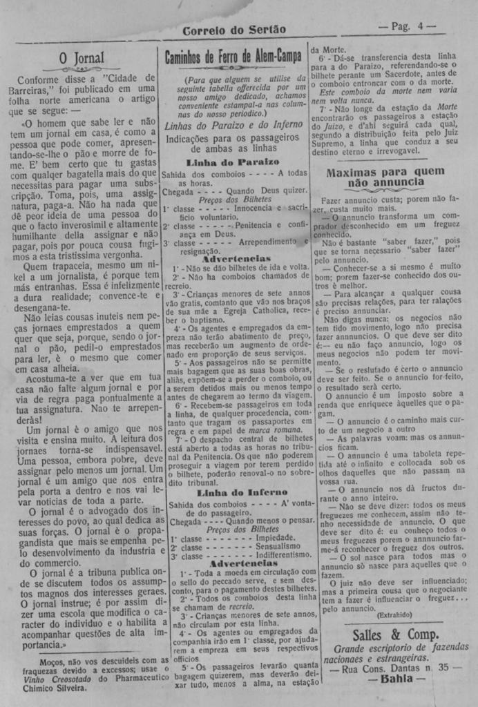 Veremos hoje: Máximas para quem não anuncia (Jul. 1924) – Pela Paz..Eurycles Barreto (Out. 1924) – Um bom espelho… O jogo rouba-nos o tempo, o dinheiro e a consciência (Nov. 1924)