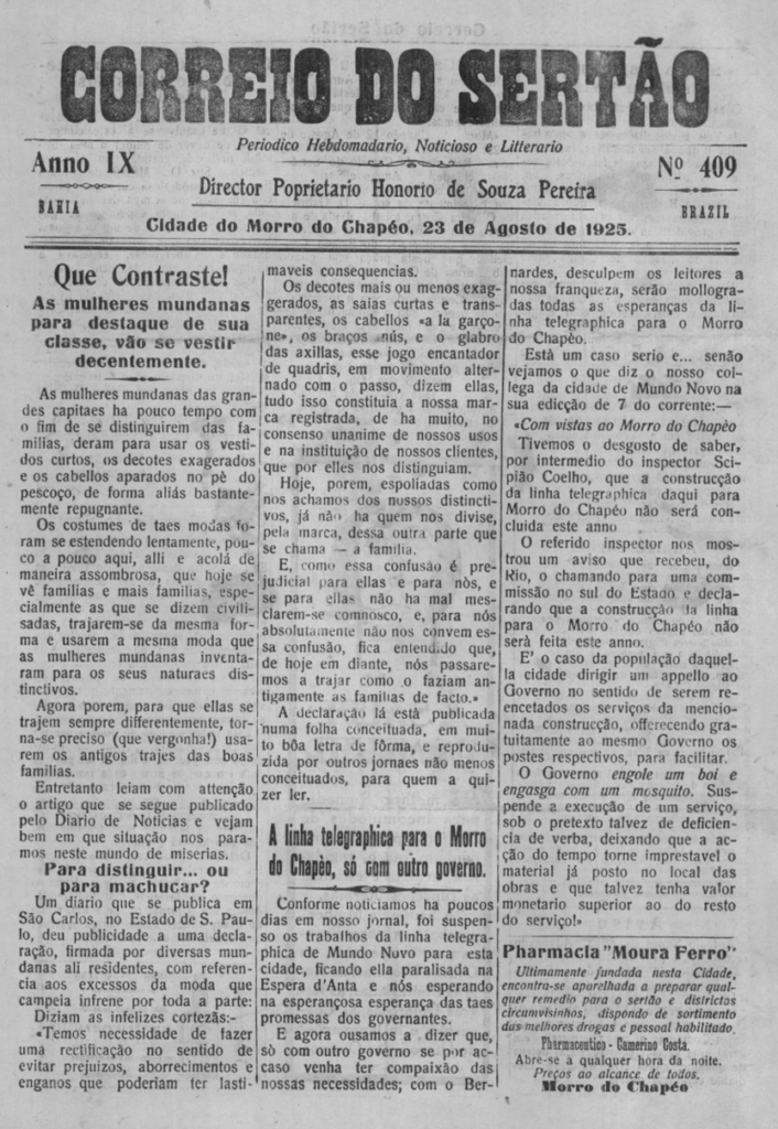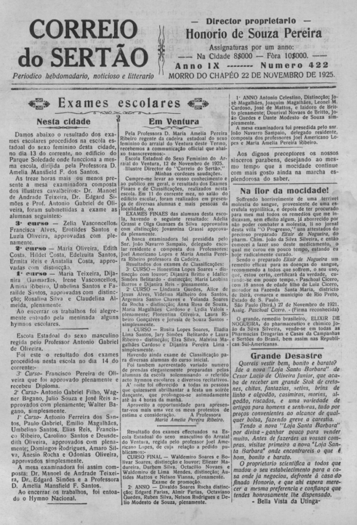 Veremos hoje: Que contraste. As mulheres mundanas… (Ago. 1925) – Exames Escolares em Morro do Chapéu (Nov. 1925) –