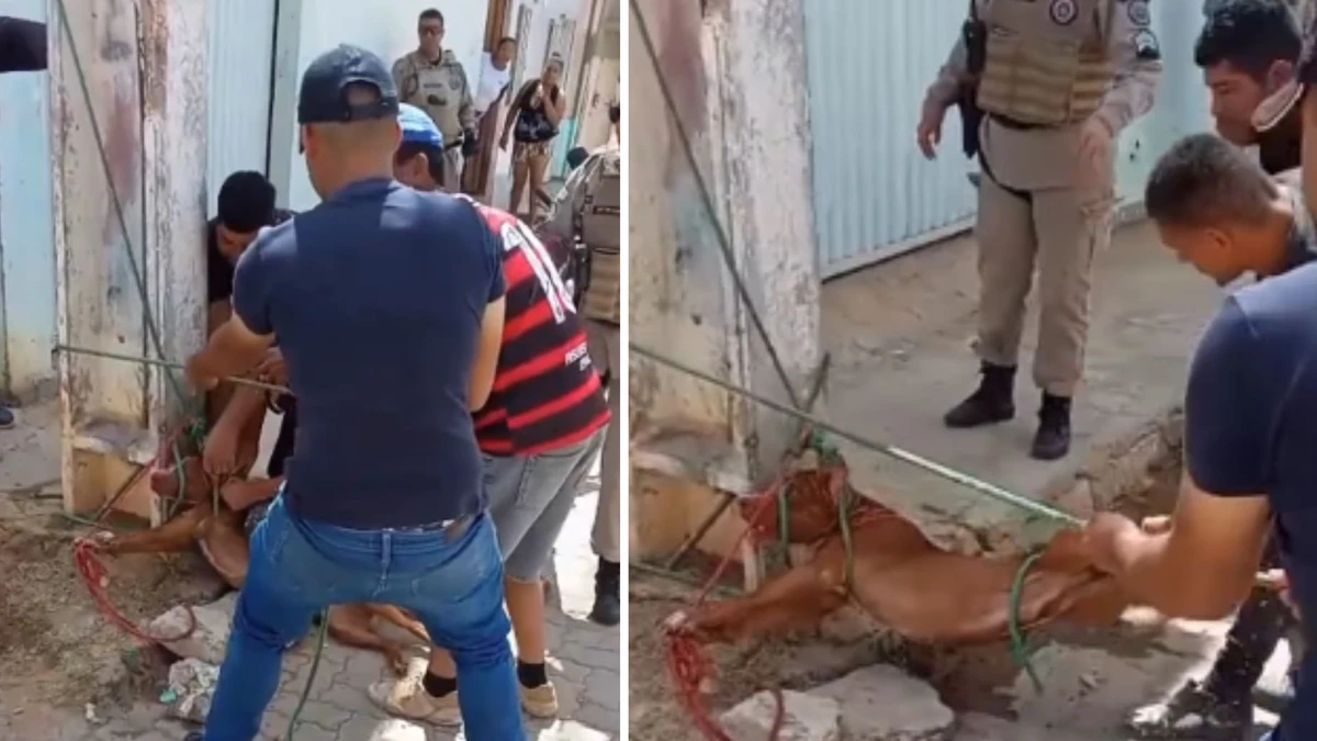 Ela contou que um outro vizinho chegou a efetuar uma tentativa de intervenção com um pedaço de madeira, mas sem sucesso. “[Ela estava com] muito sangue, no braço, na cabeça. Ele pegava mais na parte da cabeça e sacudia ela, sacudia bastante. A polícia pegou e atirou”, disse.