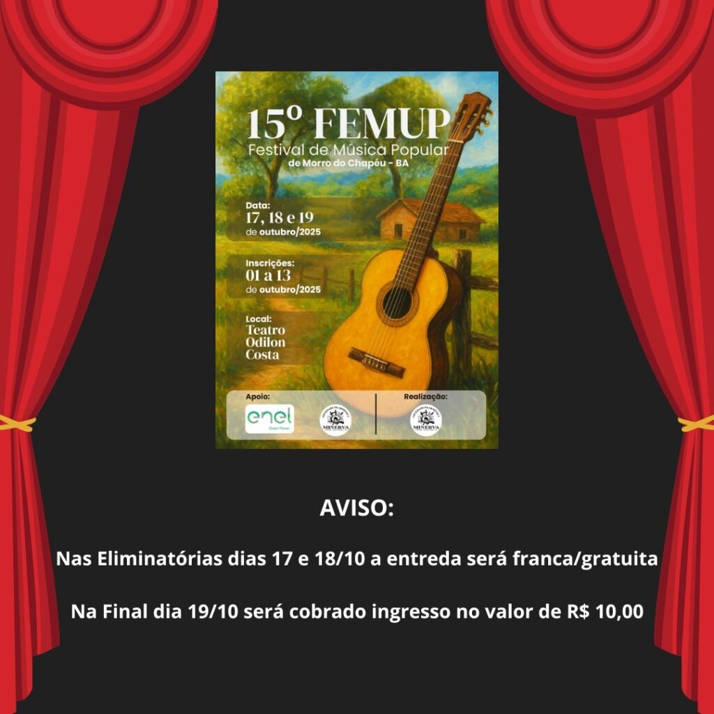 CULTURA MORRO DO CHAPÉU AVISO! 15º FEMUP de Morro do Chapéu!. 16/10/202516/10/2025 Correio do Sertão 0 comentários Comentários Facebook Visualizações: 7 Compartilhe essa notícia