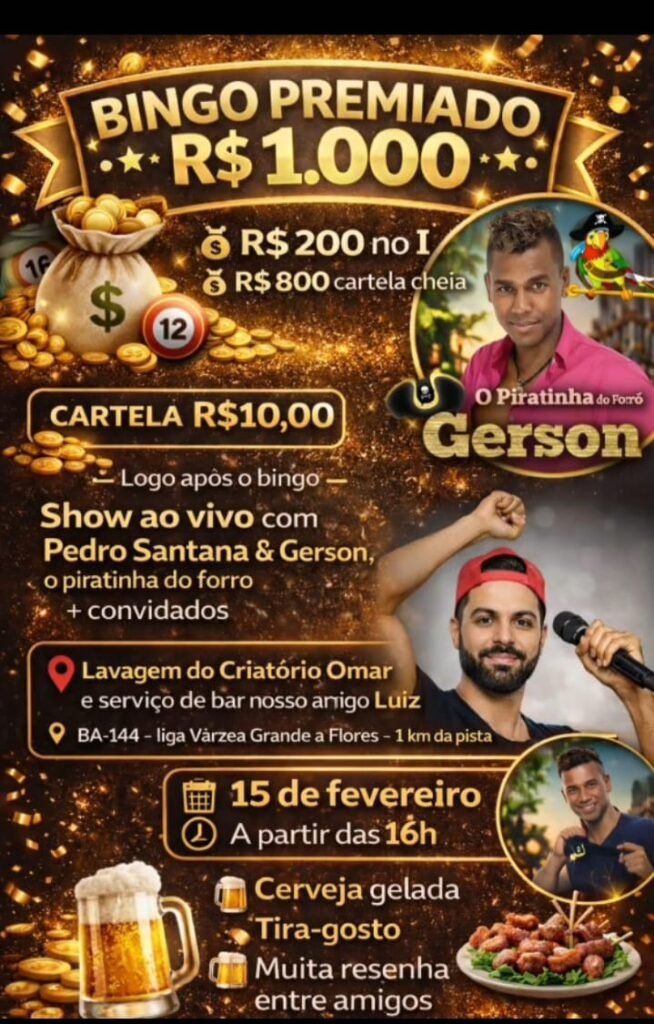 MORRO DO CHAPÉU Amanhã tem a Lavagem do Criatório Omar com show ao vivo, bingo, cerveja gelada e muito mais! 14/02/2026 Correio do Sertão Comentários Facebook Visualizações: 20 Compartilhe essa notícia