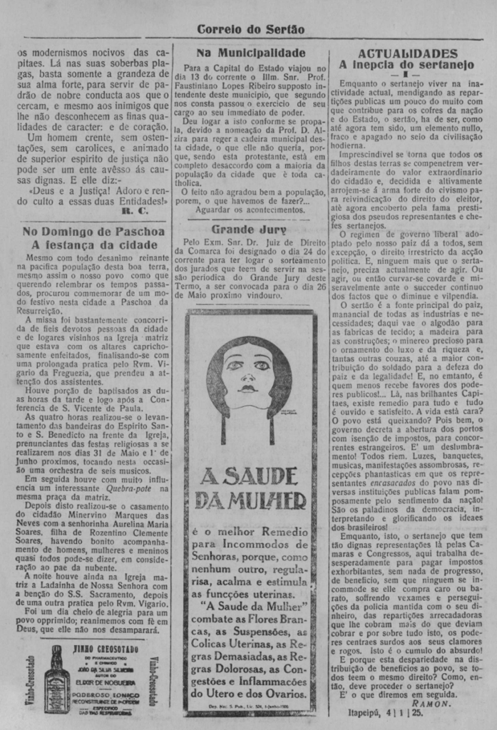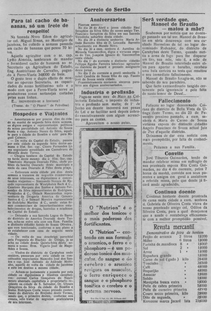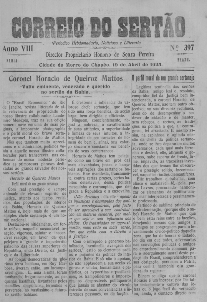 Veremos hoje: Coronel Horácio de Queiroz Mattos (Abr. 1925) – O sertão se pacificou – Para tal cachos de bananas, só um frete de respeito! ( Mai. 1925)