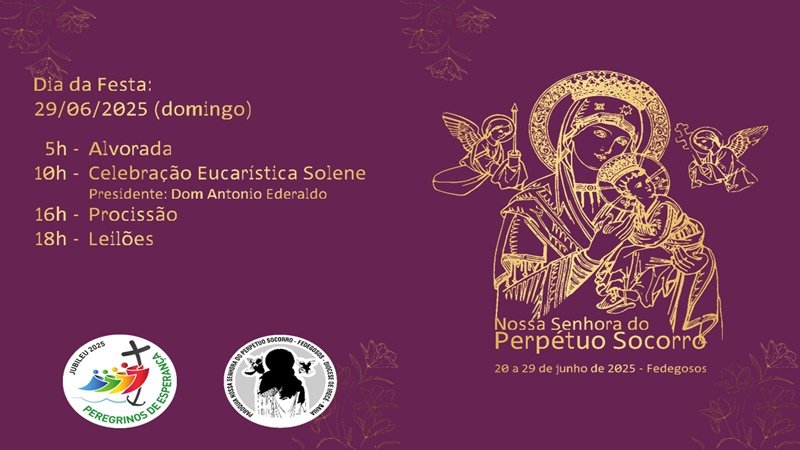 A Novena da Festa de Nossa Senhora do Perpétuo Socorro em Fedegosos, deu início no dia 20 deste mês de junho e seguirá até o dia 28. Já no dia 29 (Domingo) acontecerá a grande festa, tendo a Santa Missa às 10h, presidida pelo nosso Bispo Diocesano, Dom Antônio Ederaldo.