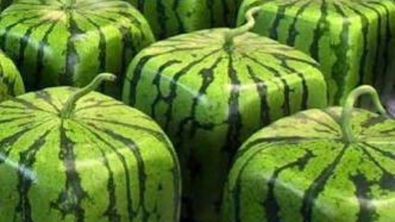 Por causa da falta de espaço, na década de 1970, na região de Shikoku, uma das ilhas do Japão, os agricultores locais perceberam que a melancia redonda era um transtorno logístico. Ela não empilha bem, ocupa muito espaço e ainda pode rolar com facilidade, dificultando o armazenamento e o transporte. Então eles resolveram pegar a melancia quando ainda está pequena e colocar dentro de uma forma rígida, geralmente feita de vidro ou acrílico. Resultado: melancia quadrada sem modificação genética, nem uso de produtos químicos. No Japão essas frutas São destinadas à decoração e ao mercado de presentes de luxo.