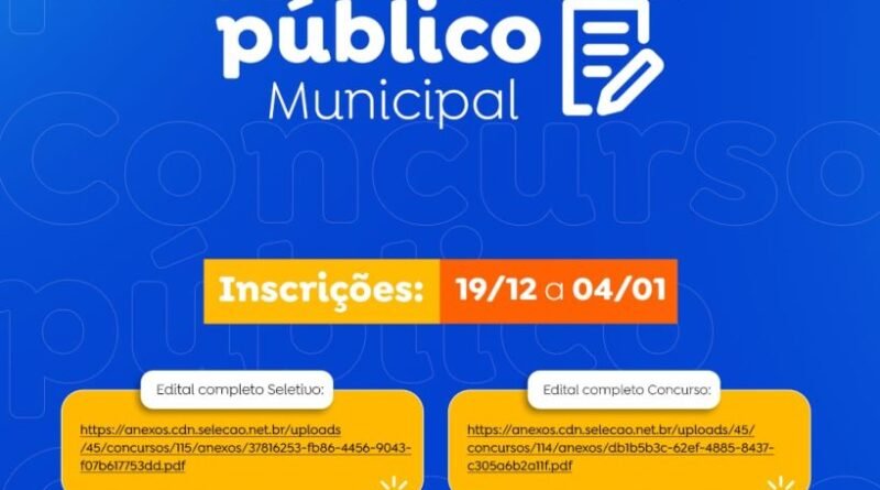 De acordo com o edital, o concurso será executado pela empresa MS Concursos, sob supervisão da Comissão Organizadora do Município. A seleção tem como objetivo suprir vagas existentes e aquelas que vierem a surgir durante o período de validade do certame, que será de dois anos a partir da homologação do resultado final, podendo ser prorrogado uma única vez por igual período, a critério da administração municipal.