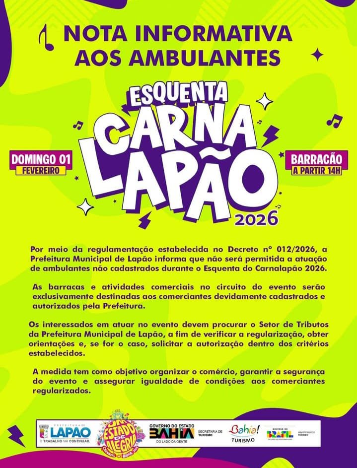 REGIONAIS Sexta-feira inicia o melhor Carnaval antecipado do interior da Bahia…CARNALAPÃO!!!! 02/02/2026 Correio do Sertão Comentários Facebook Visualizações: 25 Compartilhe essa notícia